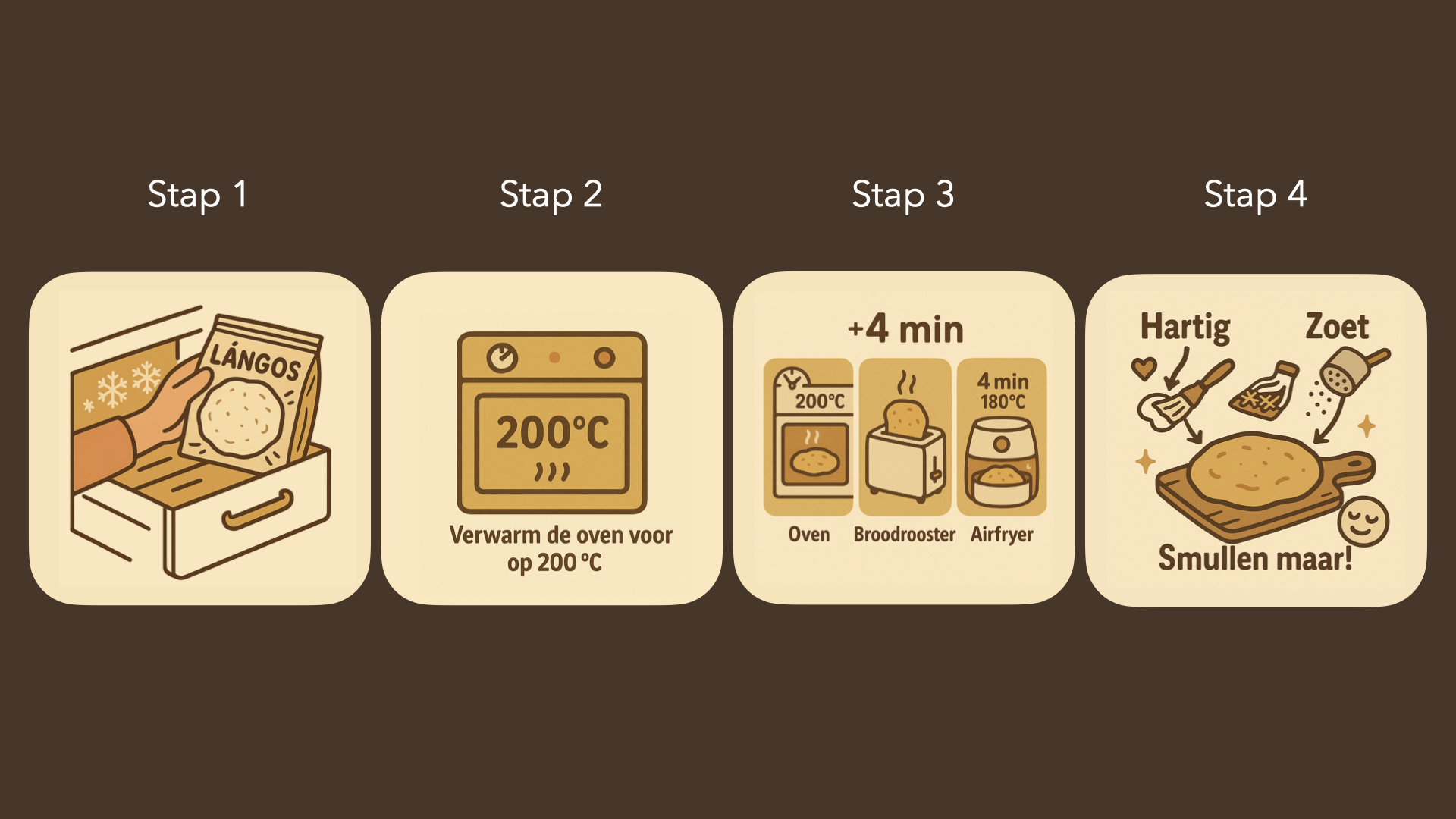 Lángos is niet alleen heel lekker, lángos is in een handomdraai bereid. In no time zit jij te smullen van dit warme, knapperige broodje dat je met elke denkbare toppings kunt beleggen. Hoe? Klik door en check de afbeelding.