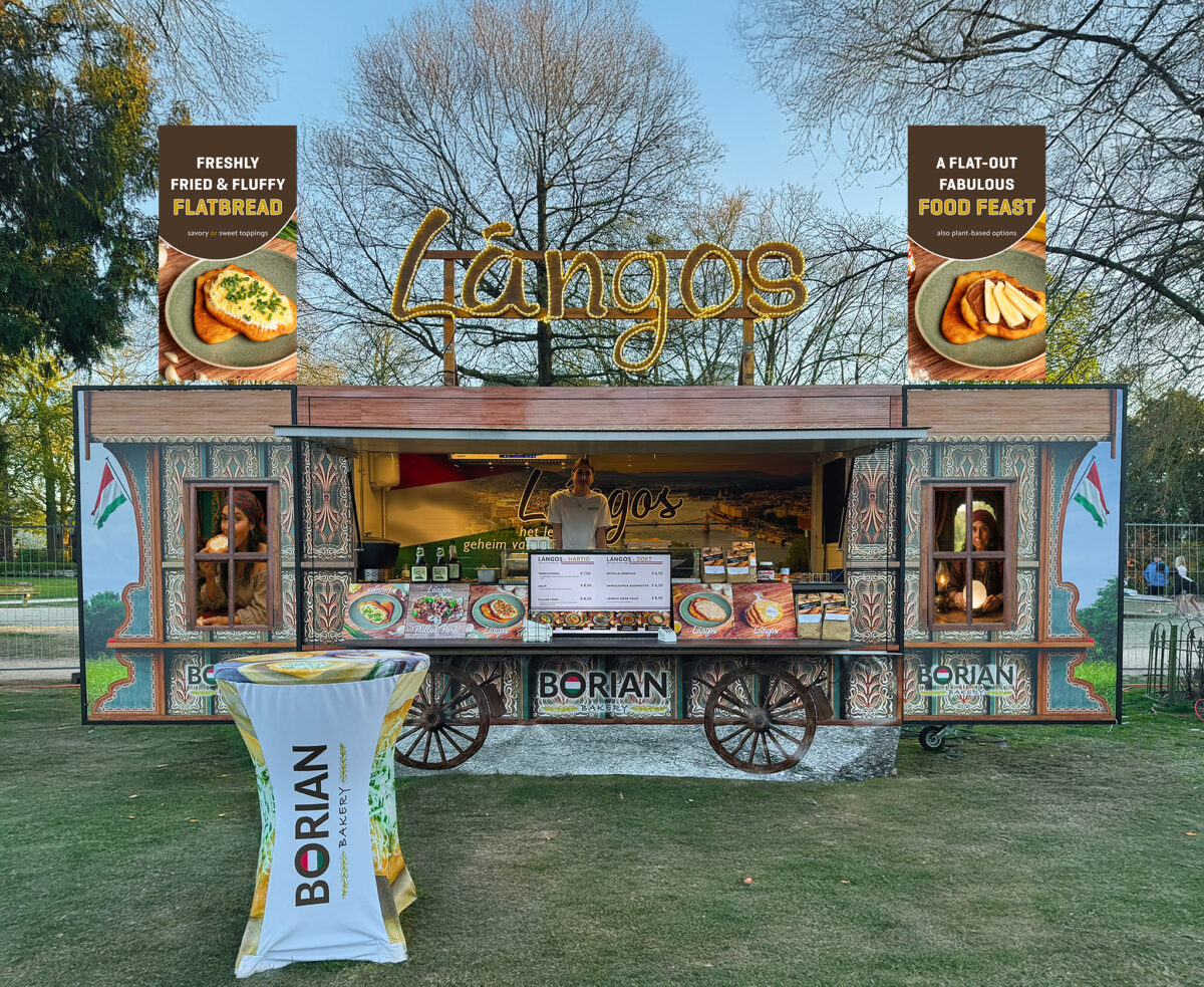 Lángos bereiden voor jullie live, geheel in stijl vanuit een van onze foodtrucks. Deze foodtrucks kennen diverse afmetingen. De kans dat het niet past, is vrijwel nihil. Met onze foodtruck steel jij als organisator sowieso de show.